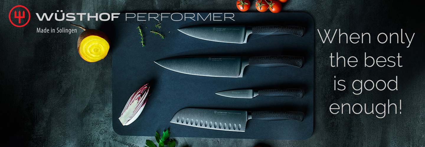 The Classic-series extra-sharp steak knives for cutting meat dishes. Set of 4 knives.