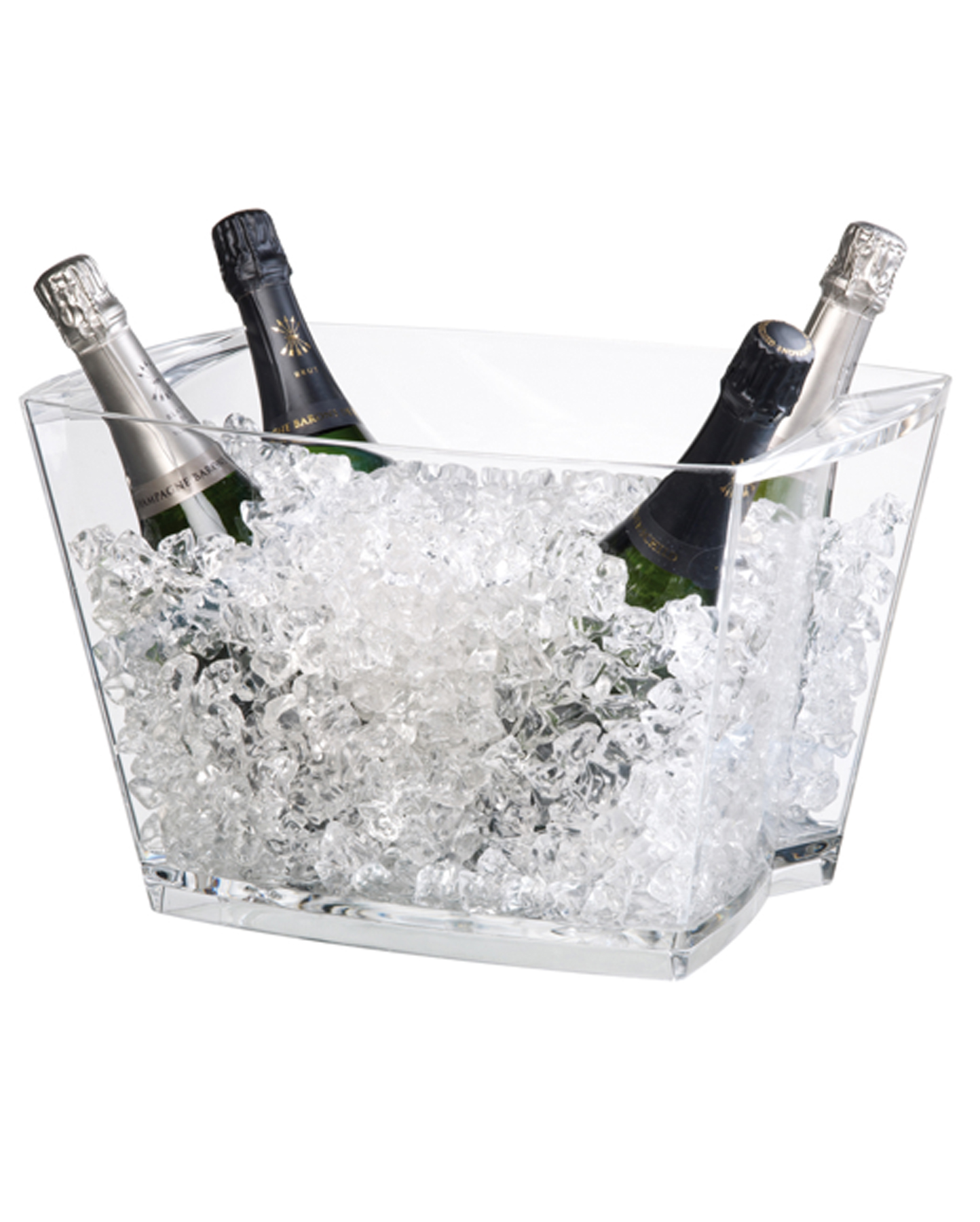 A stylish, acrylic champagne cooler for multiple wine or champagne bottles.