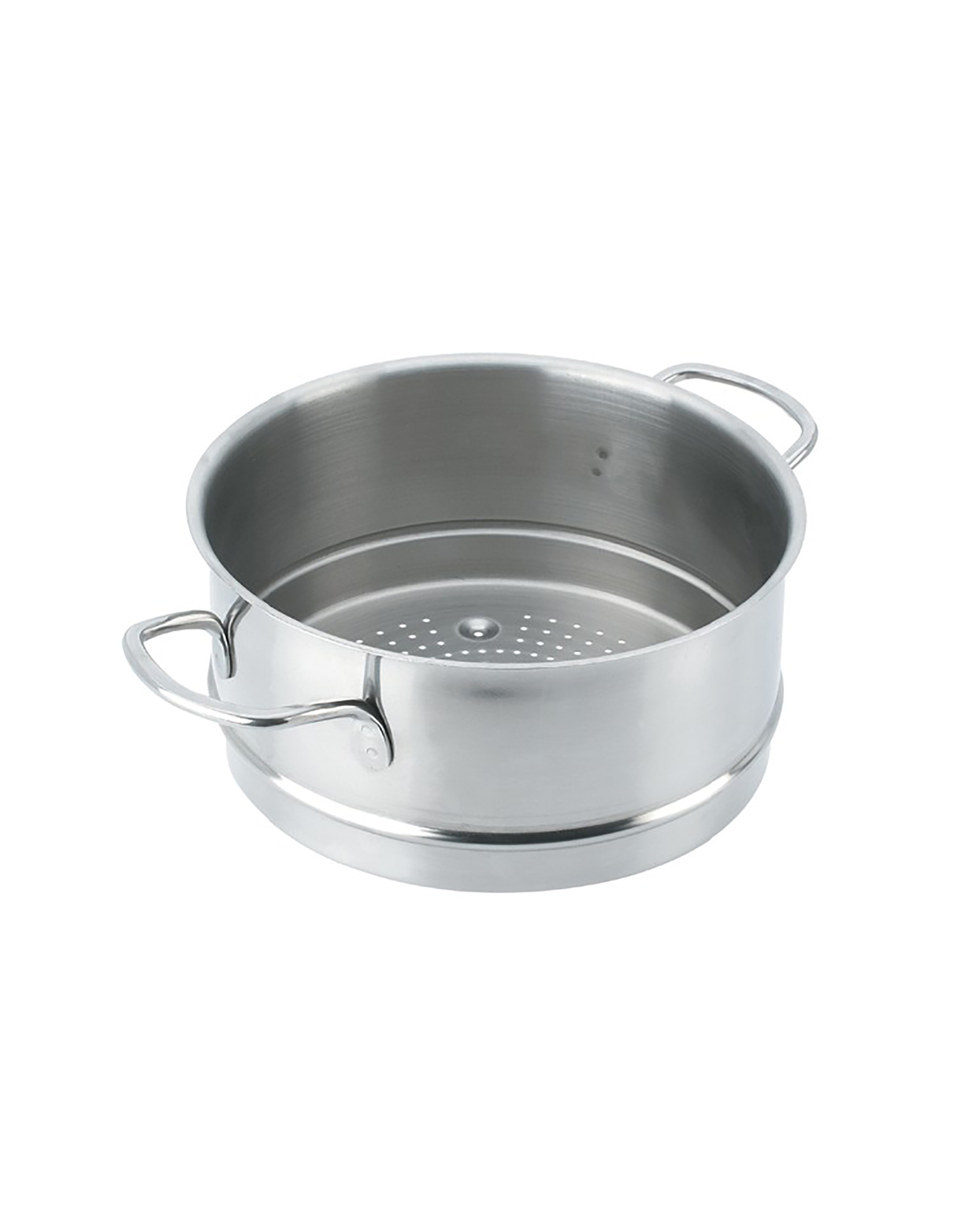 Practical, the steam cooker fits perfectly on the stewpans in the de Buyer Priority/Prim'Appety/Twisty stainless steel ranges.