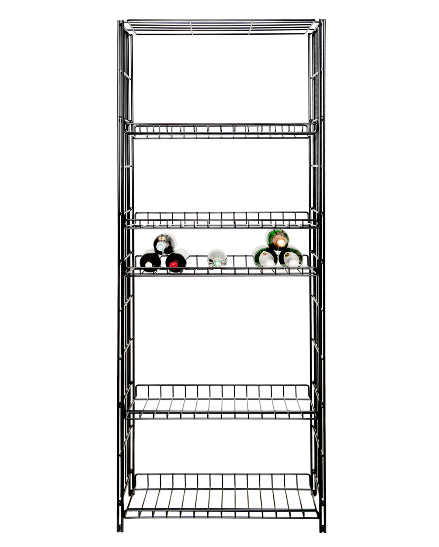 Yksinkertaisen tyylikäs ja edullinen ratkaisu viininkellarin säilytykseen. Perushyllyssä 5 hyllytasoa, jolloin kapasiteetti maksimissaan n. 150 viinipulloa.