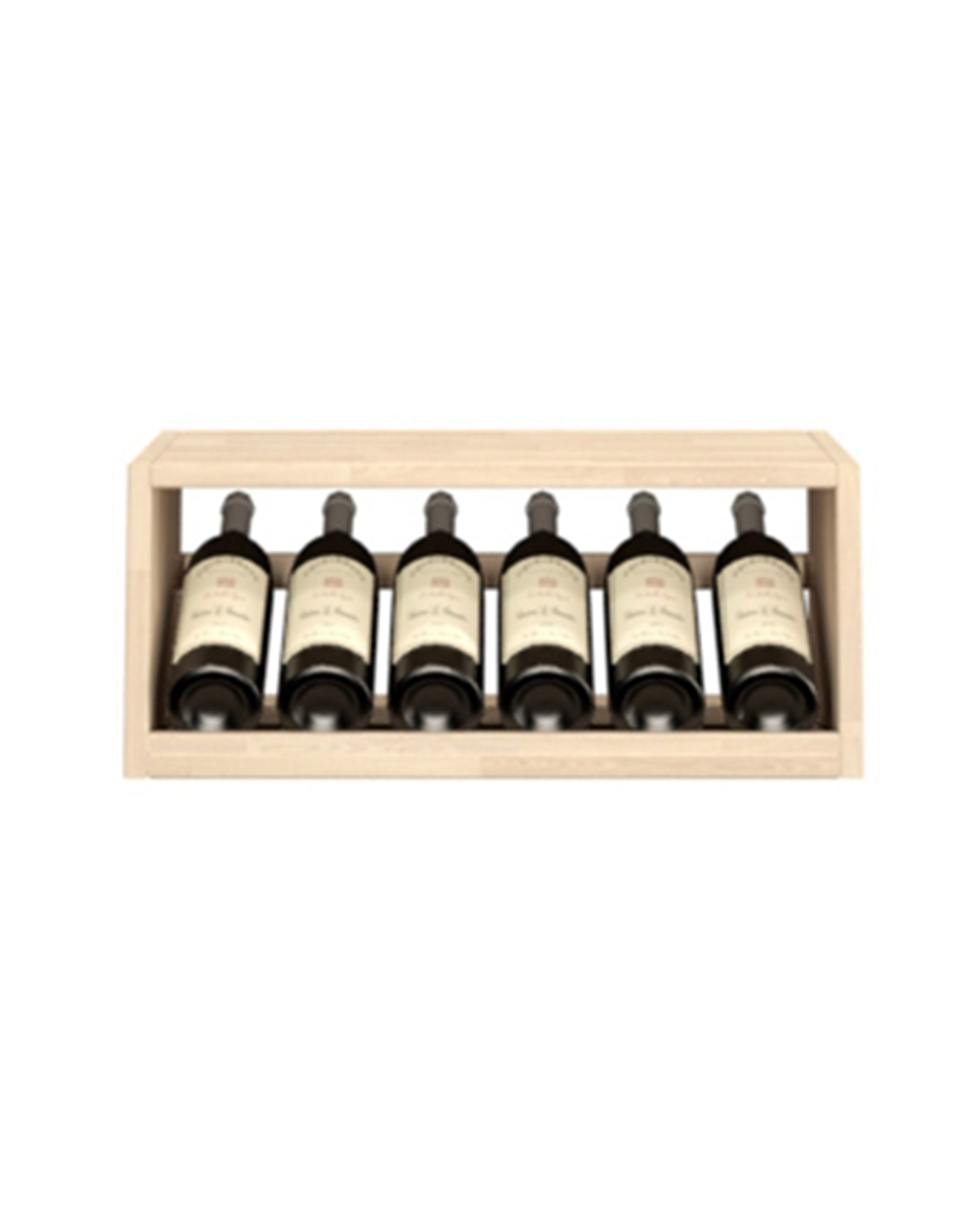 Yksinkertainen viinipullohyllymoduli, johon mahtuu 6 pulloa. Sopii käytettäväksi erillisenä tai osana isompaa Qbic-viinihyllykokonaisuutta.