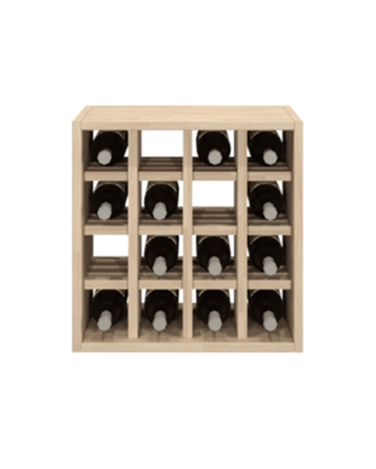 Yksinkertainen kuutionmallinen viinipullohyllymoduli, johon mahtuu 16 pulloa. Sopii käytettäväksi erillisenä tai osana isompaa Qbic-viinihyllykokonaisuutta.