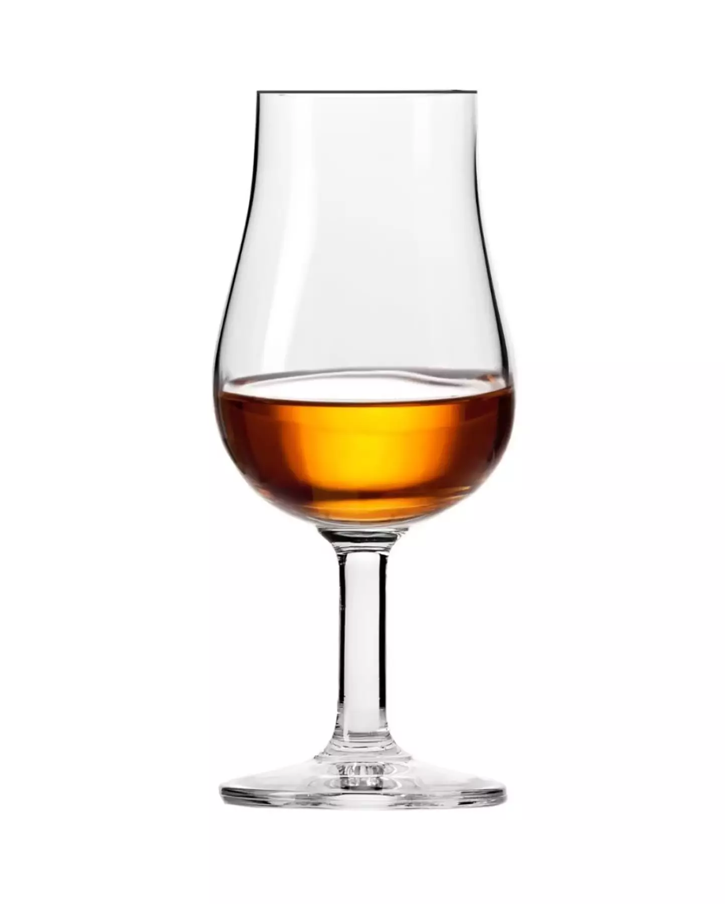 Tulppaaninmallinen maistelu- ja nautiskelulasi viskeille ja muille tislatuille juomille.