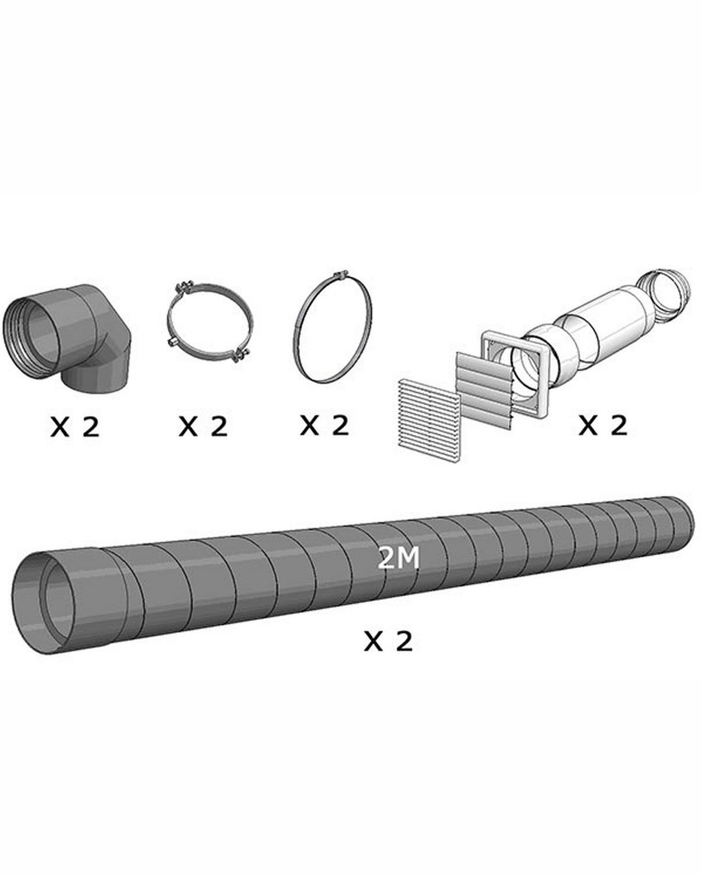 Wine IN25 X kan (valfritt) levereras med en mycket noggrann tillbehörssats, som inkluderar isolerade kanaler och jalusier med teleskopisk väggkanal.