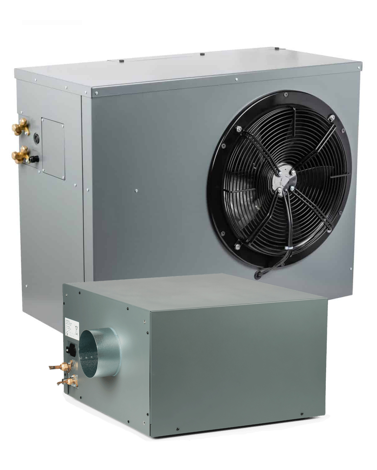 Ett högeffektivt tvådelat vinkällarkylsystem som diskret kan installeras i en stor max 80m3 vinkällare. Installation kräver en VVS-specialist.