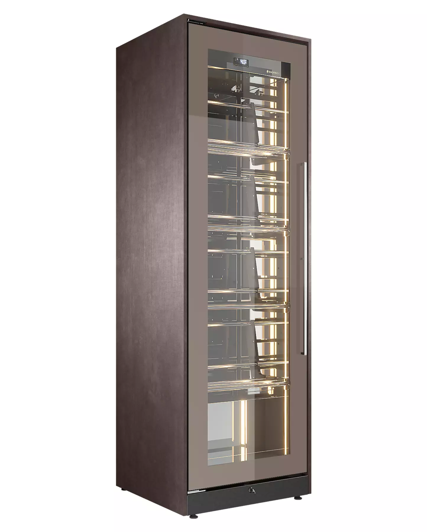 En snygg vinkyl i italiensk design som mäter 654 mm i bredd och 650 mm i djup med justerbara temperaturintervall.