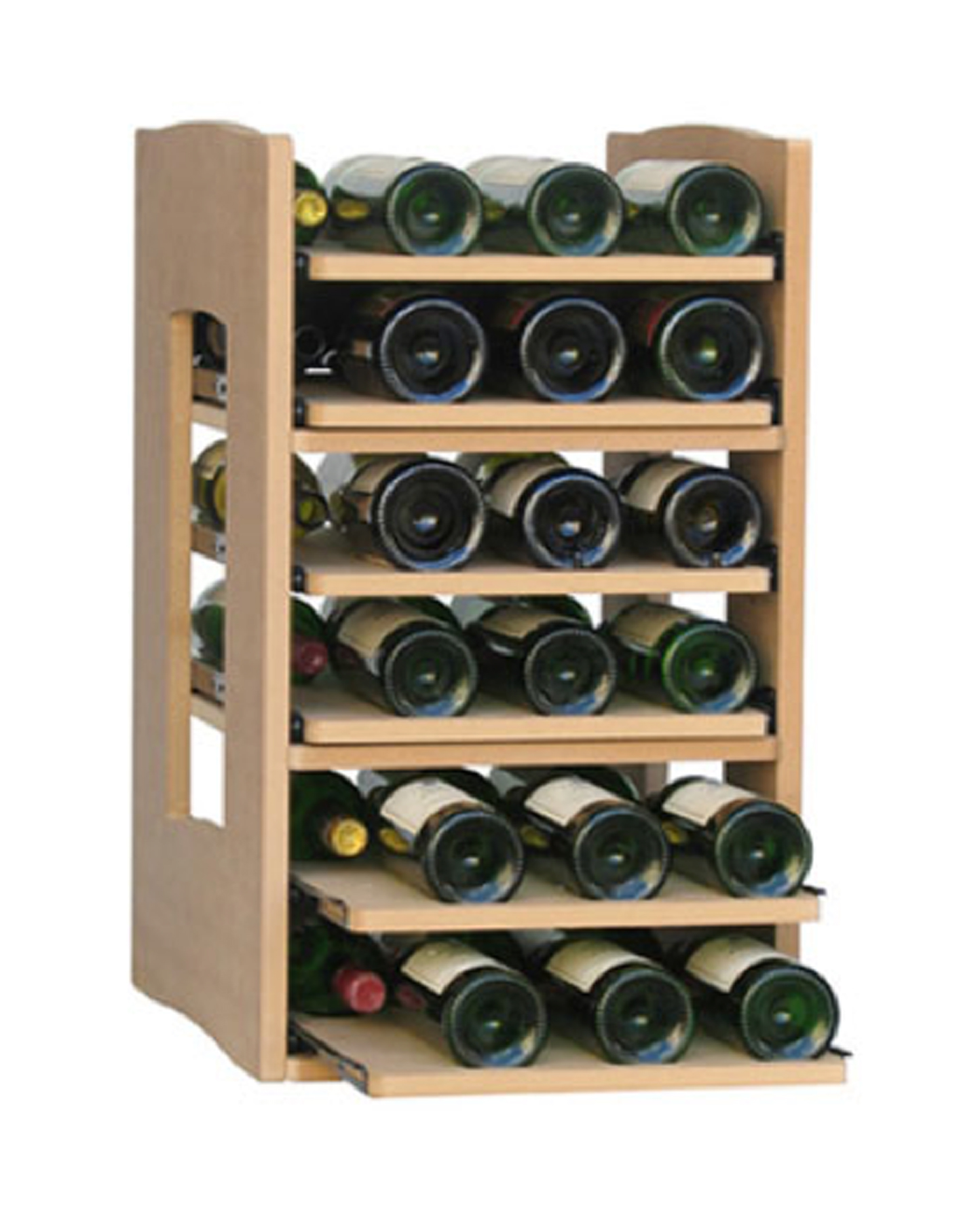 Cavicase Wine Racking Element with Sliding Shelves The highly versatile Cavicase wine racking system comprises of 3 different elements. The case rack shelves and sliding bottle shelves are mounted on rollers which allow them to glide in and out at the touch of a finger. The unique design allows one element of any type to be mounted on top of another, up to 3 elements high, to form a robust racking system. Only the uppermost element should be secured to prevent the unlikely event of it being pulled forward.