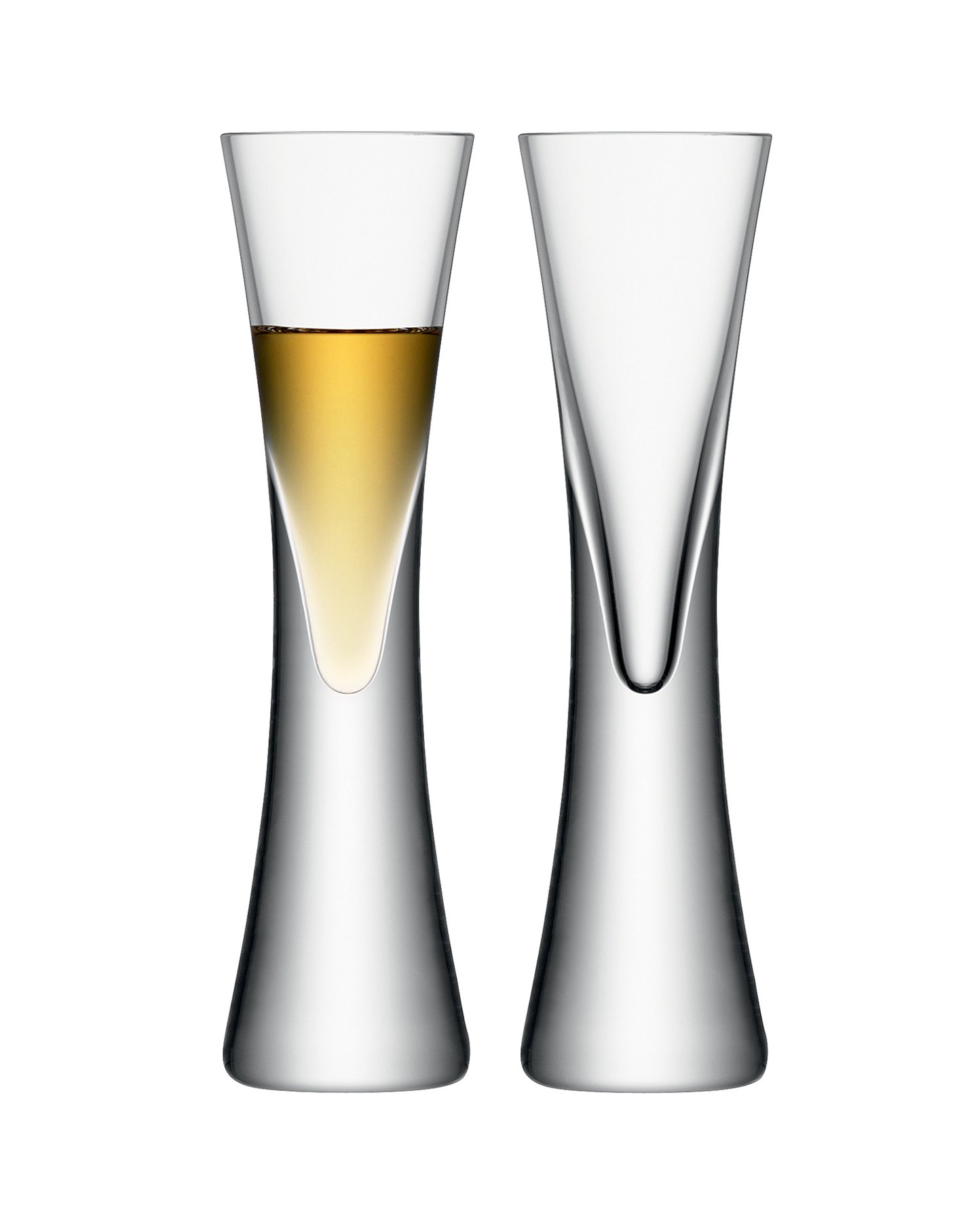 Gift-boxed in pairs, these chic, modern liqueur glasses, with their pleasingly weighty base, add a hint of decadence to any table setting or social event.