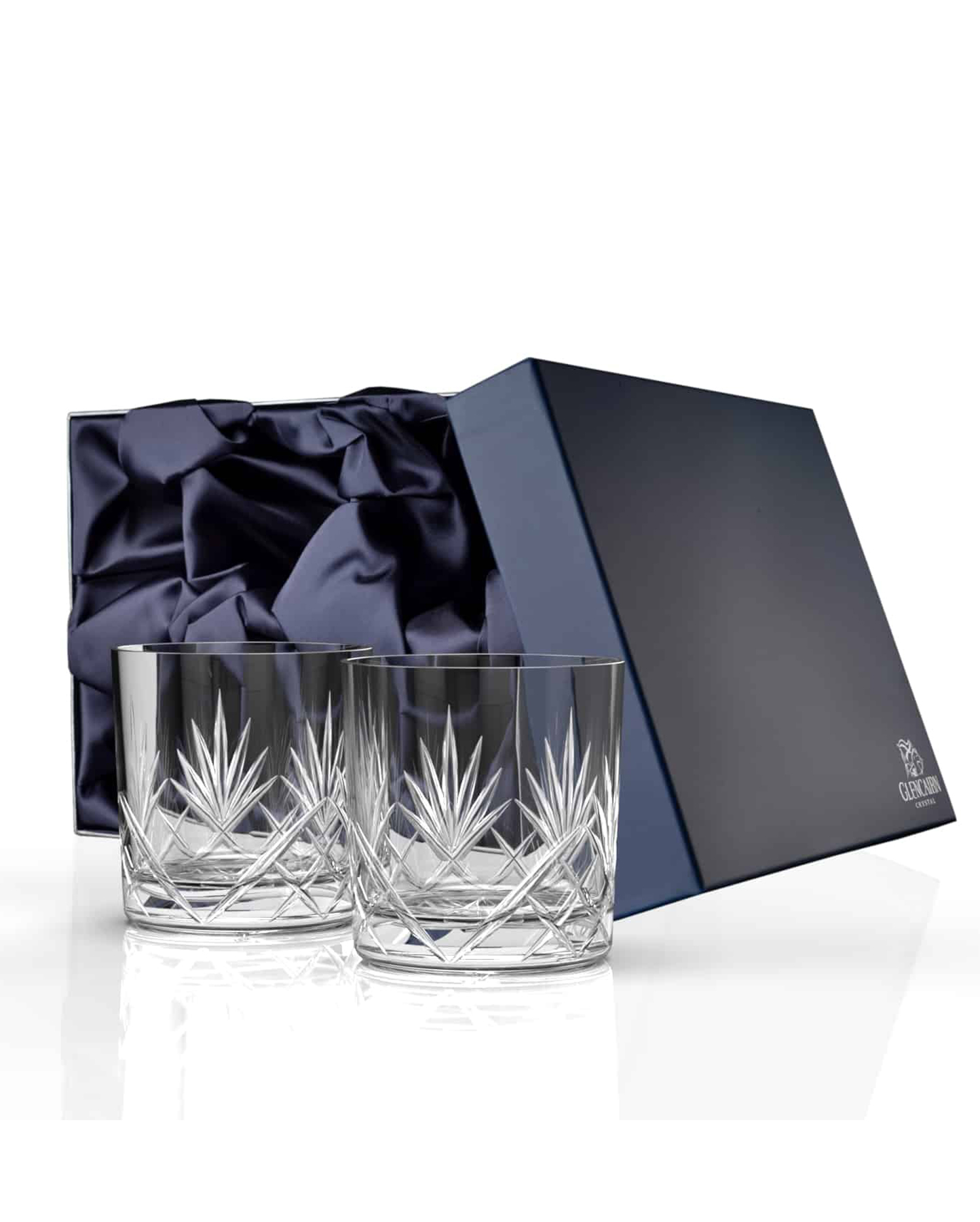 2 stylish, polished glasses packaged in a silk lined gift box. A great gift choice for a friend of whisky.